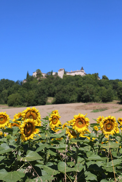 Des paysages du Quercy Blanc avec ses maisons typiques, les murets de pierre sèches, des pigeonniers variés et plusieurs panoramas sur le village de Flaugnac depuis le coteau d’en face.